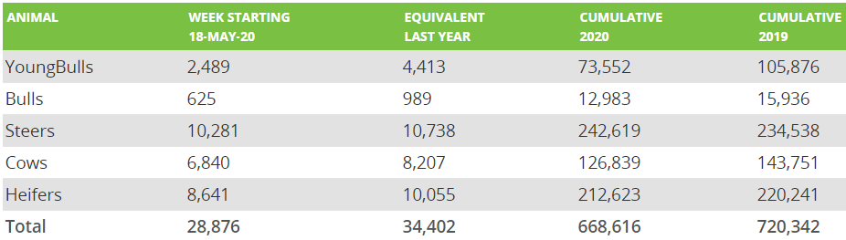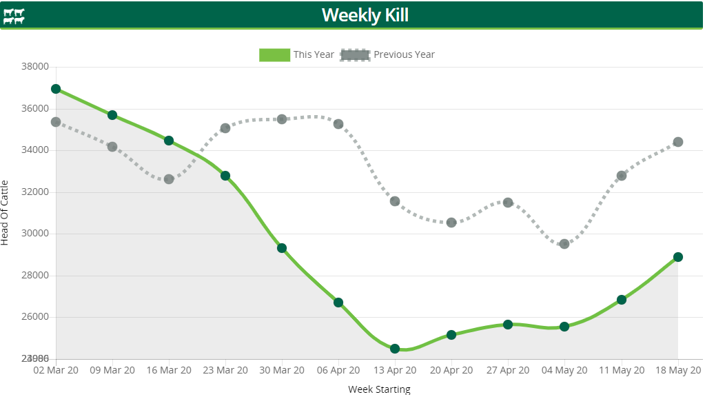 Last week’s kill increased by 2,039 head with steers and heifers standing at 10,281 head and 8,641 head respectively. With an extra 1,300 heifers killed, this indicates the availability of these animals finished off grass.