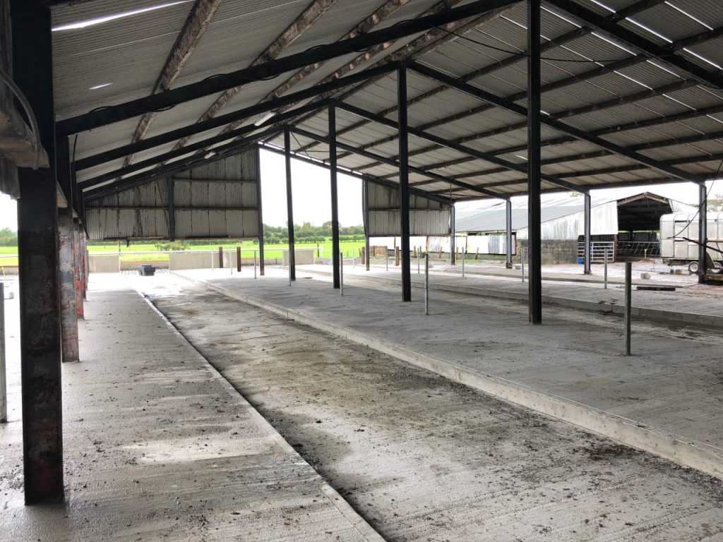 The shed, which holds the milking parlour, is a six-bay building and measures 28.8m in length and 8.9m in width. The build also contains a farm office and a changing area.