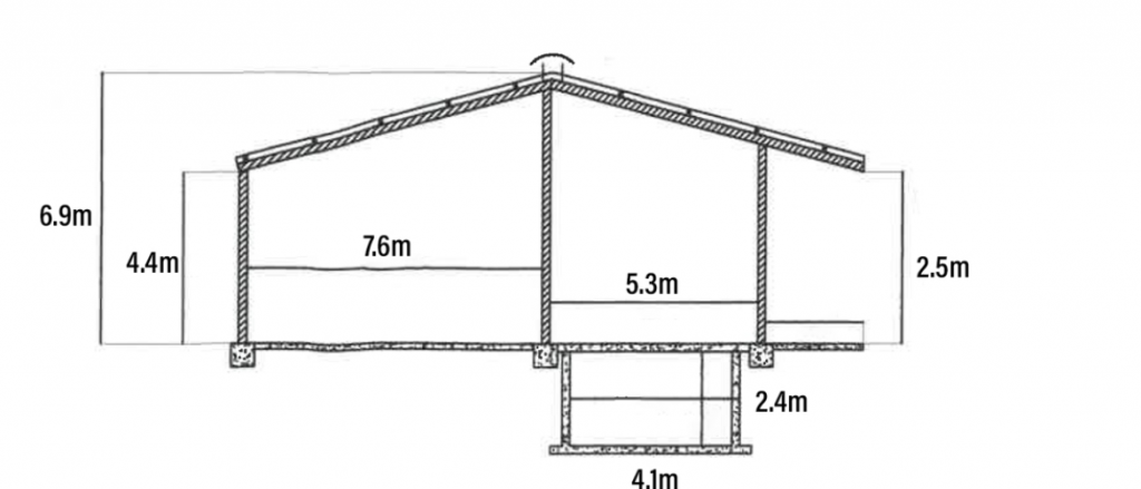 The lieback area spans the whole length of the shed and is 7.6m wide. It can be split further into two smaller sections – in essence it can be split from one big pen into two smaller pens.