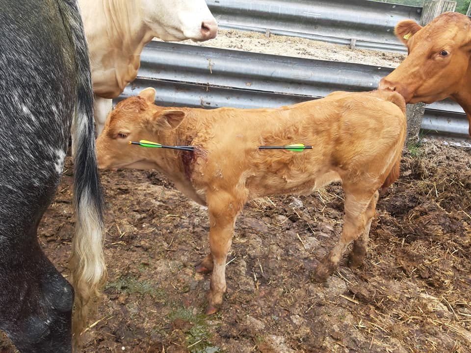 “Two young calves shot with a crossbow. One shot in the hind leg and one shot twice in the shoulder.