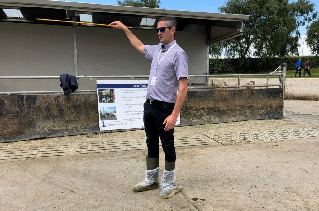 “Remember, when the cow exits the parlour, all she wants to do is get back to the paddock and fill herself with grass again; so she needs to be able to flow back to the paddock easily.”