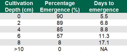 When tilled to 2cm, 89% of the seeds will emerge. A full breakdown of the depths and percentage emergence are listed below.