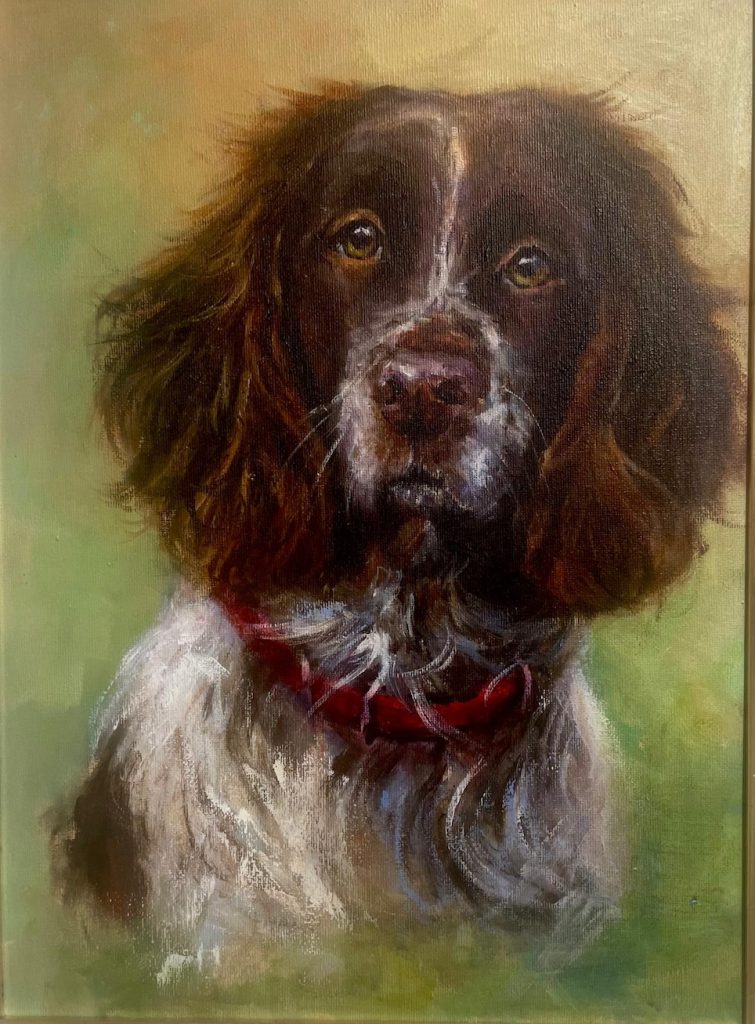 Based in the countryside in Co. Wicklow, near Shillelagh, her main commissions are for dogs, horses, and gardens as well as portraits.