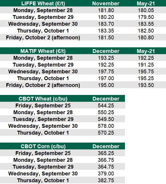 Grain prices saw an improvement this week – Matif wheat for December 2020 hit €197.75/t on Wednesday (September 30).