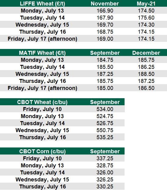 On the continent, a spot price of €164/t was available for feed barley (delivered Rouen) on Friday afternoon, July 17. Meanwhile, a spot price of €177/t for Free-On-Board (FOB) Creil malting barley was available.