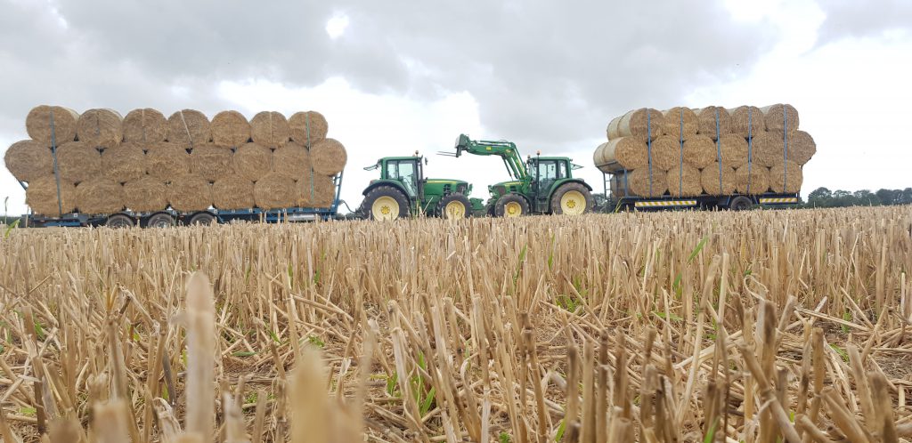 Tied and ready to go, Richie Lowe and Jerome O’Connor were drawing bales of barley straw (below) from Kilfinny to Croagh in Co. Limerick before the rain fell.
