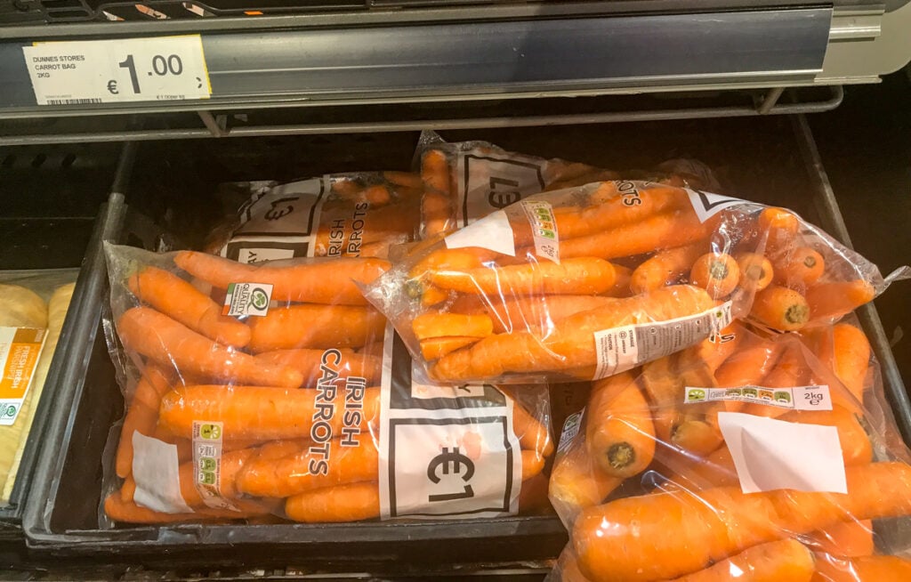 Carrots will no doubt be adding a bit of colour to your Christmas plate. A 2kg bag of carrots in one store was retailing for €1, while 1kg bags were on offer for 49c in two other stores visited. Parsnips to join were also retailing at 49c (500g).