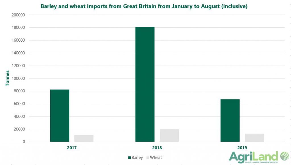 The figures below detail barley and wheat imports up until the end of August for 2017, 2018 and 2019 from Great Britain and Northern Ireland.