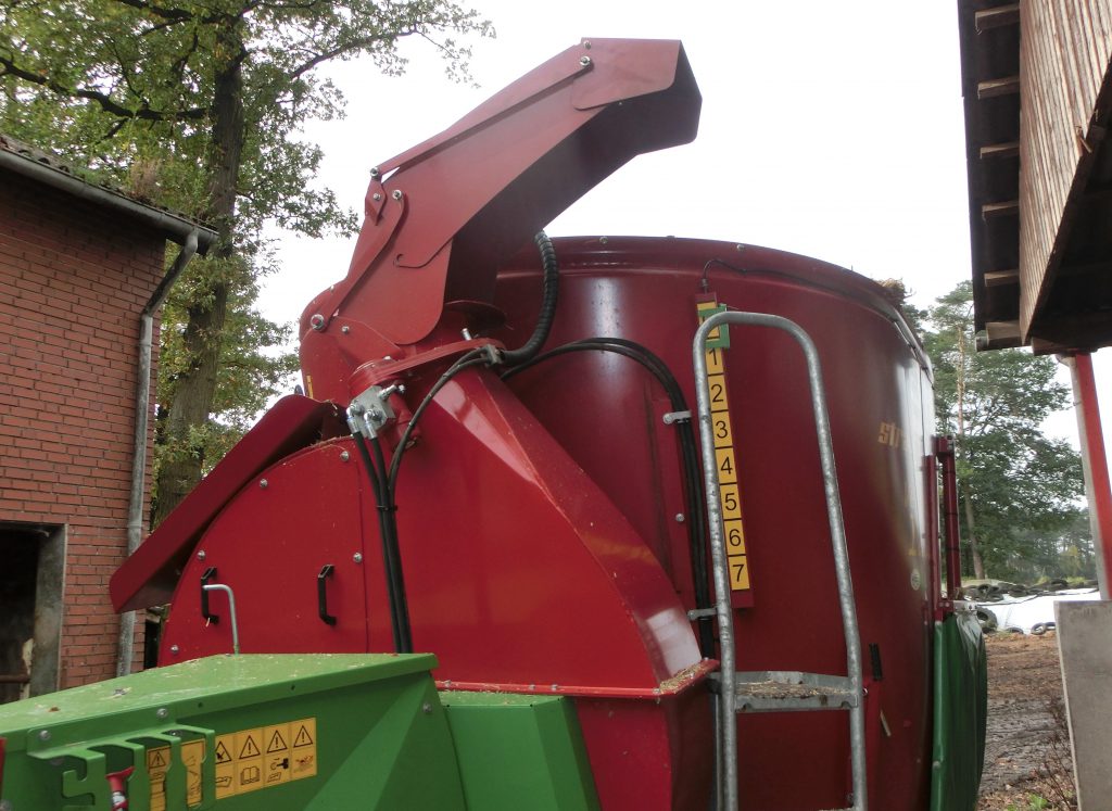 In fact, says IAM, the mechanical straw blower is an optional add-on for all Verti-Mix models. The chute is mounted on a ring-gear; the spout can be swivelled to the right or left using a hydraulic motor.