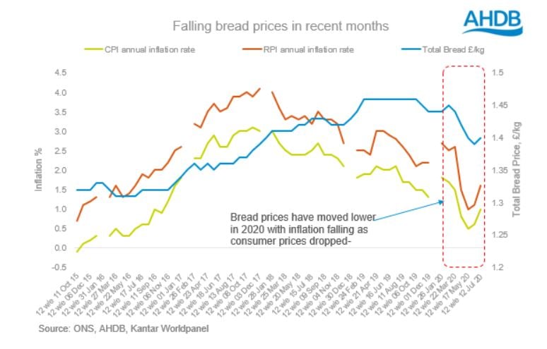David also commented that bread prices have been falling since the beginning of 2020 and that this is part of the reason that inflation has been reducing. This graph (below) helps to describe this.