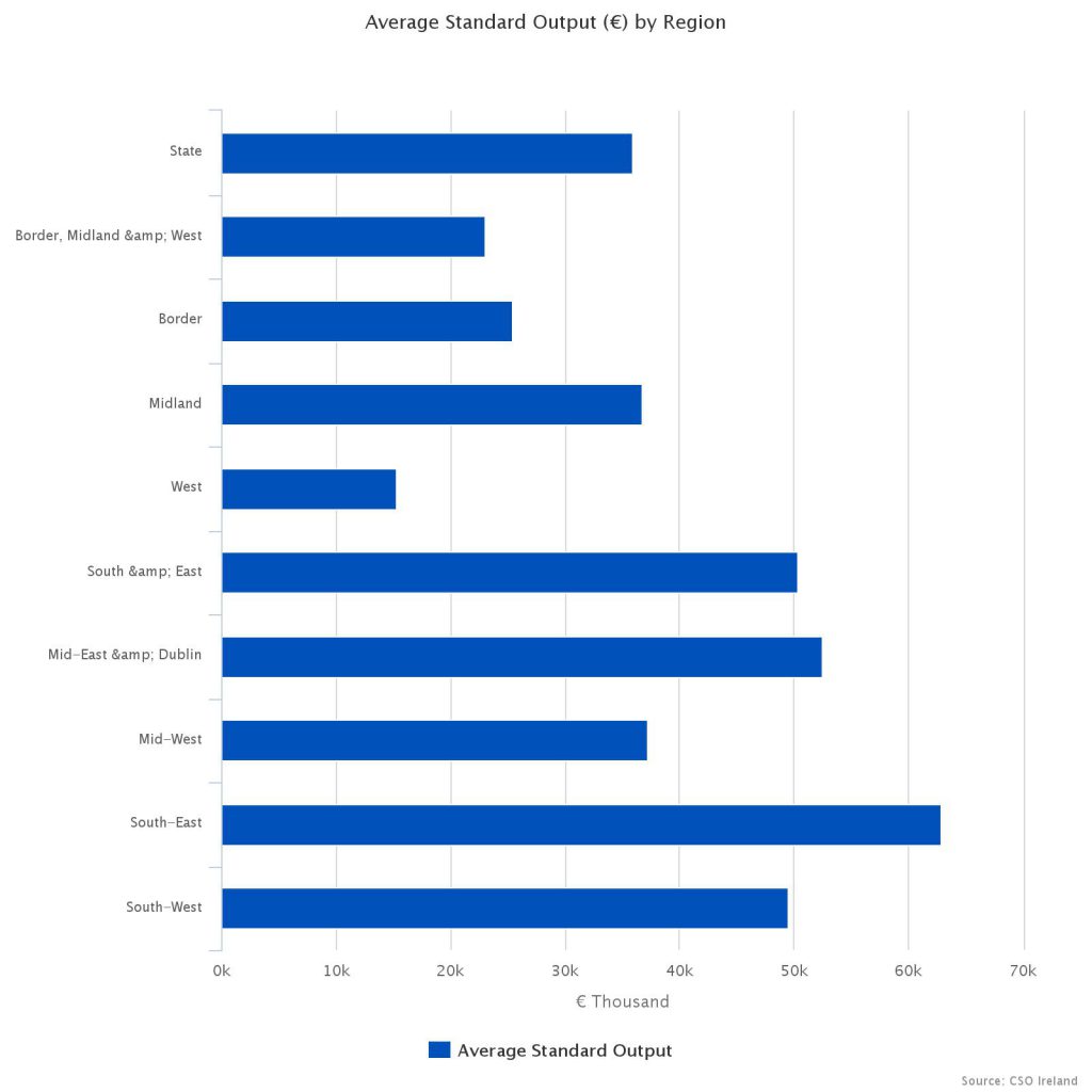 The average standard output (SO) was €35,912 in 2013, the SO in Leinster stood at €50,000 which was much higher that the BMW region of €23,013.