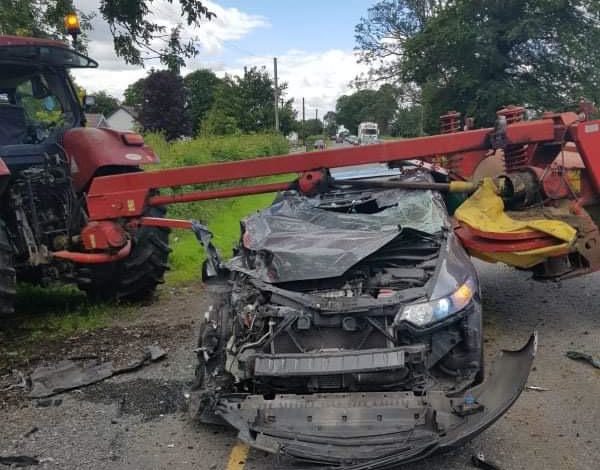 “Gardaí attended a two-vehicle road traffic collision between a car and a tractor that occurred at Annaharvey, Tullamore, Co. Offaly, at approximately 3:30pm on Friday, July 10.