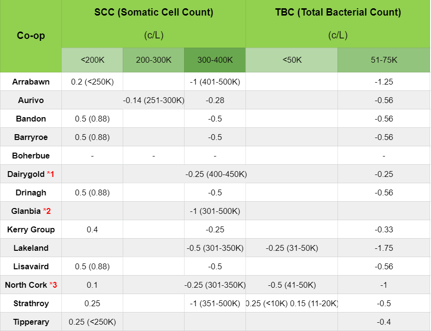The focus is on bonuses/penalties that have the greatest impact on a supplier’s ‘milk cheque’.