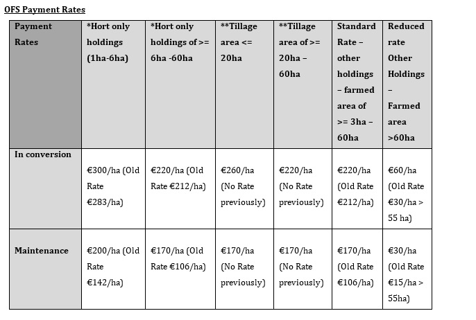 Farmers enter into a contract for a minimum of five years, with standard rate payments of up to €220 per hectare a year during the conversion period and up to €170 per hectare when they have achieved full organic status.