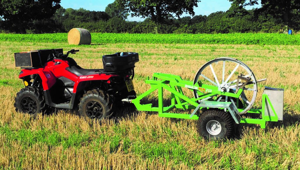 The PCN 210 extracts cores at around 3m intervals. The machine can be towed behind a quad at speeds up to 16kph. A spring-loaded auger is pushed into the soil to pick up a core.