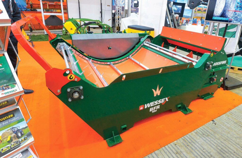 The Wessex BFR-180, winner of the livestock equipment category, is a modular feeding and bedding system that can be configured as a bale feeder, a straw spreader and bale feeder combination or a bale feeder with an extension chute.
