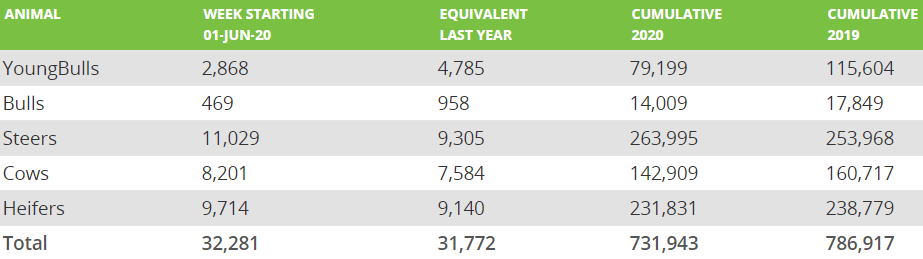 Over 32,280 cattle were slaughtered last week in Irish beef exporting plants – an increase of 1,232 head when compared to the previous week and a jump of over 500 head when compared to the equivalent week in 2019.