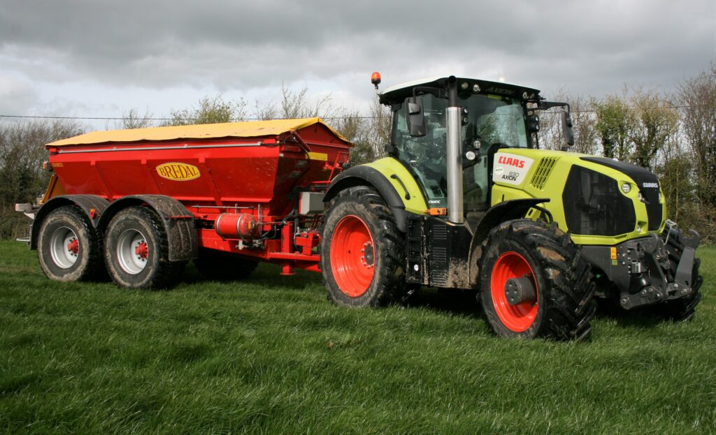 John W Anderson spoke to Conor Gilligan, who works for Declan Gilligan Agri (based near Eyrecourt, Co. Galway). He operates this rig – comprising a Claas Axion 830 (CMatic) and a tandem-axle Bredal K135.