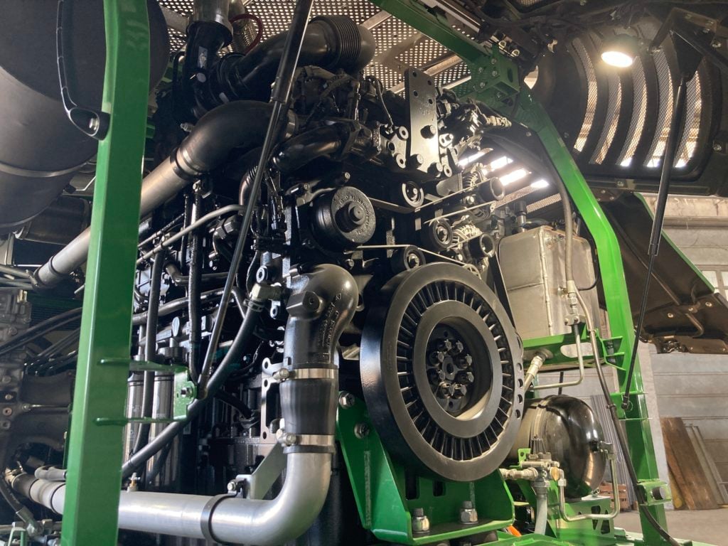 The engine requires no diesel exhaust fluid (DEF) and the engine produces 700hp in the 9500 and 750hp in the 9600.
