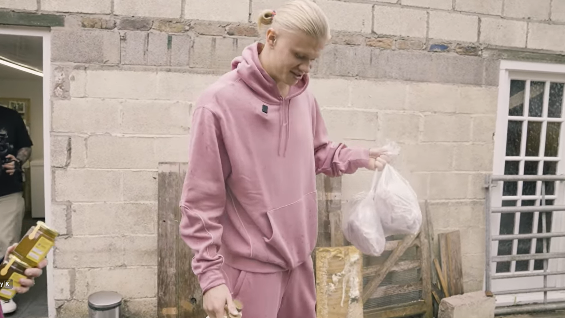 Haaland, who plays for Manchester City and the Norway national team, stopped into Greenoaks Farm in Mobberley, Cheshire to pick up some milk for the fridge...but left with his hands full, taking several cuts of beef and several jars of honey for his entourage, all sourced from the farm.