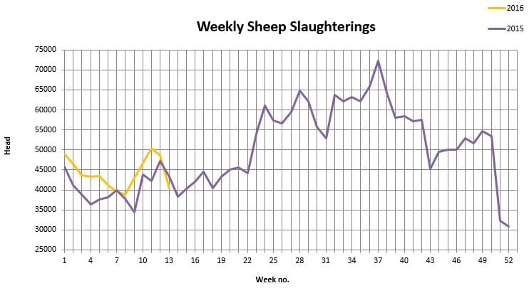 In other years, the number of spring lambs coming on stream would usually be increasing at this stage, but figures show that the week-on-week spring lamb kill dropped by 1,622 head last week on the week ending March 21.