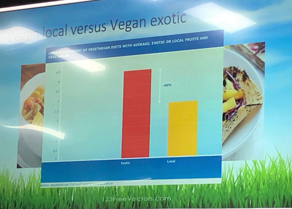 There is a 40% difference in the carbon footprint between a local vegan diet and an exotic vegan diet.